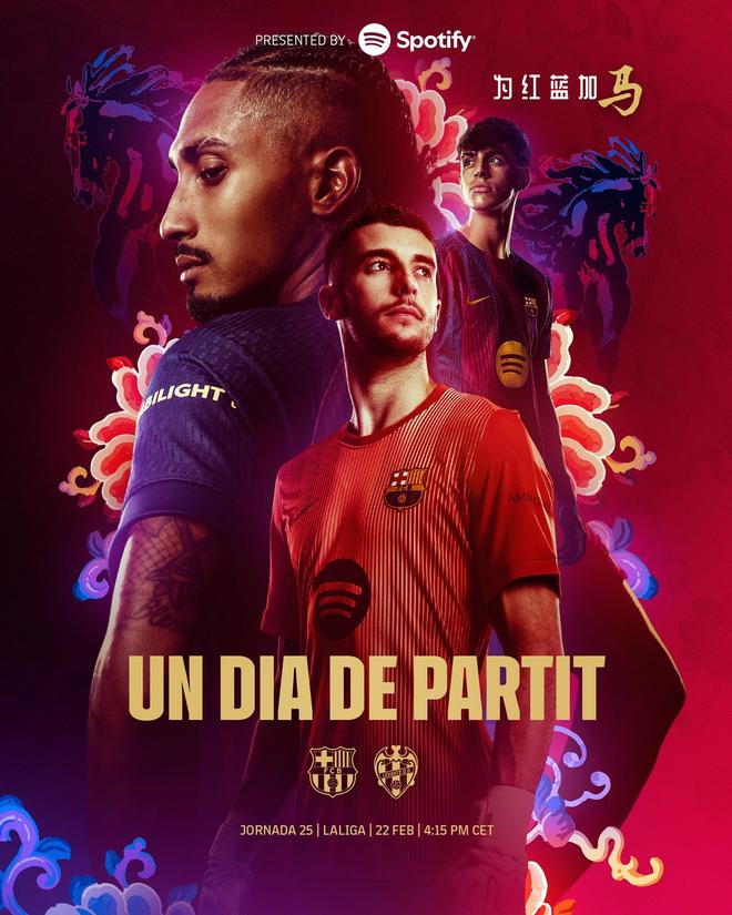 北京時間2月22日晚23點15分,西甲第25輪,巴薩主場迎戰萊萬特。賽前,巴薩發布馬年主題海報。